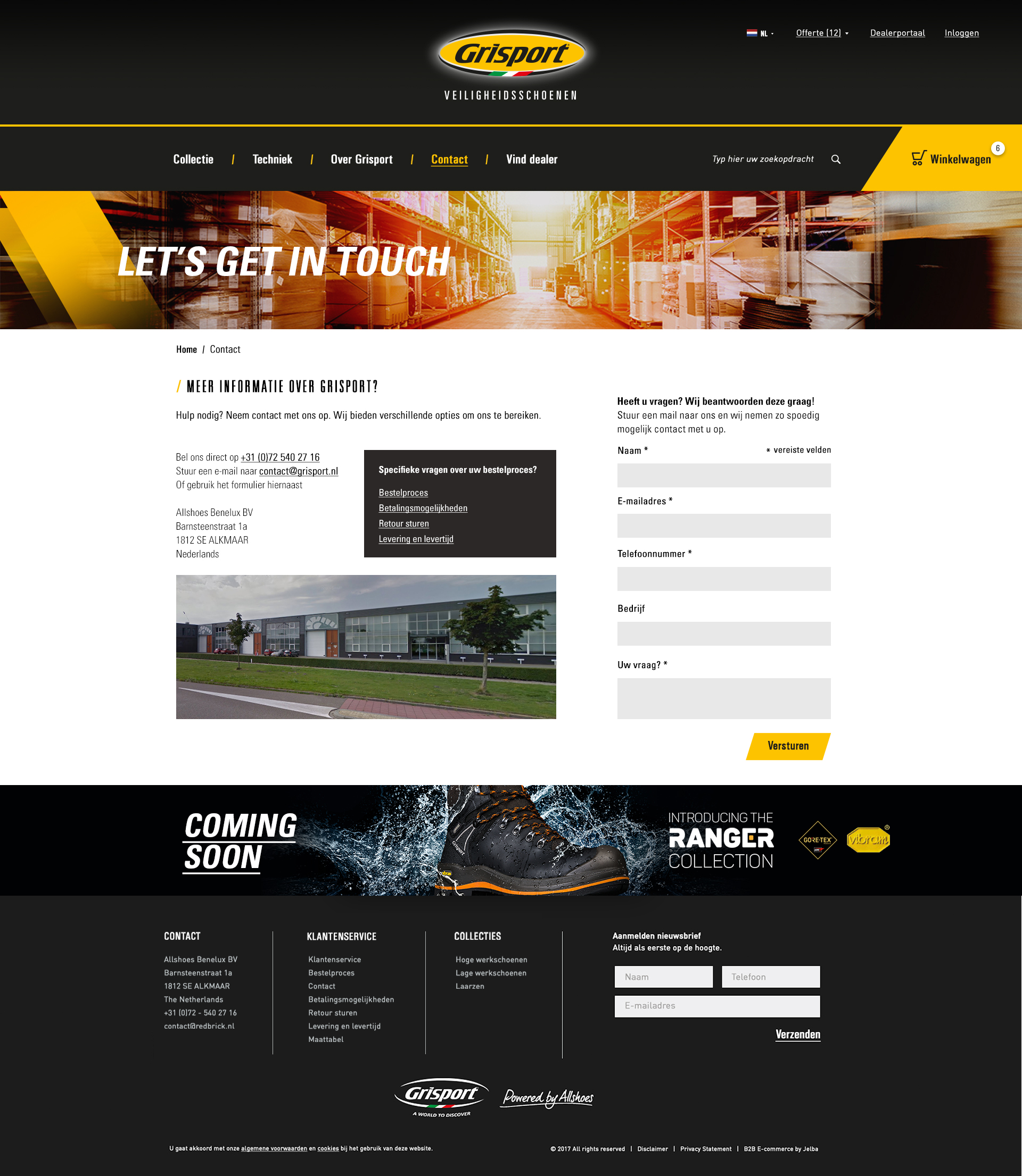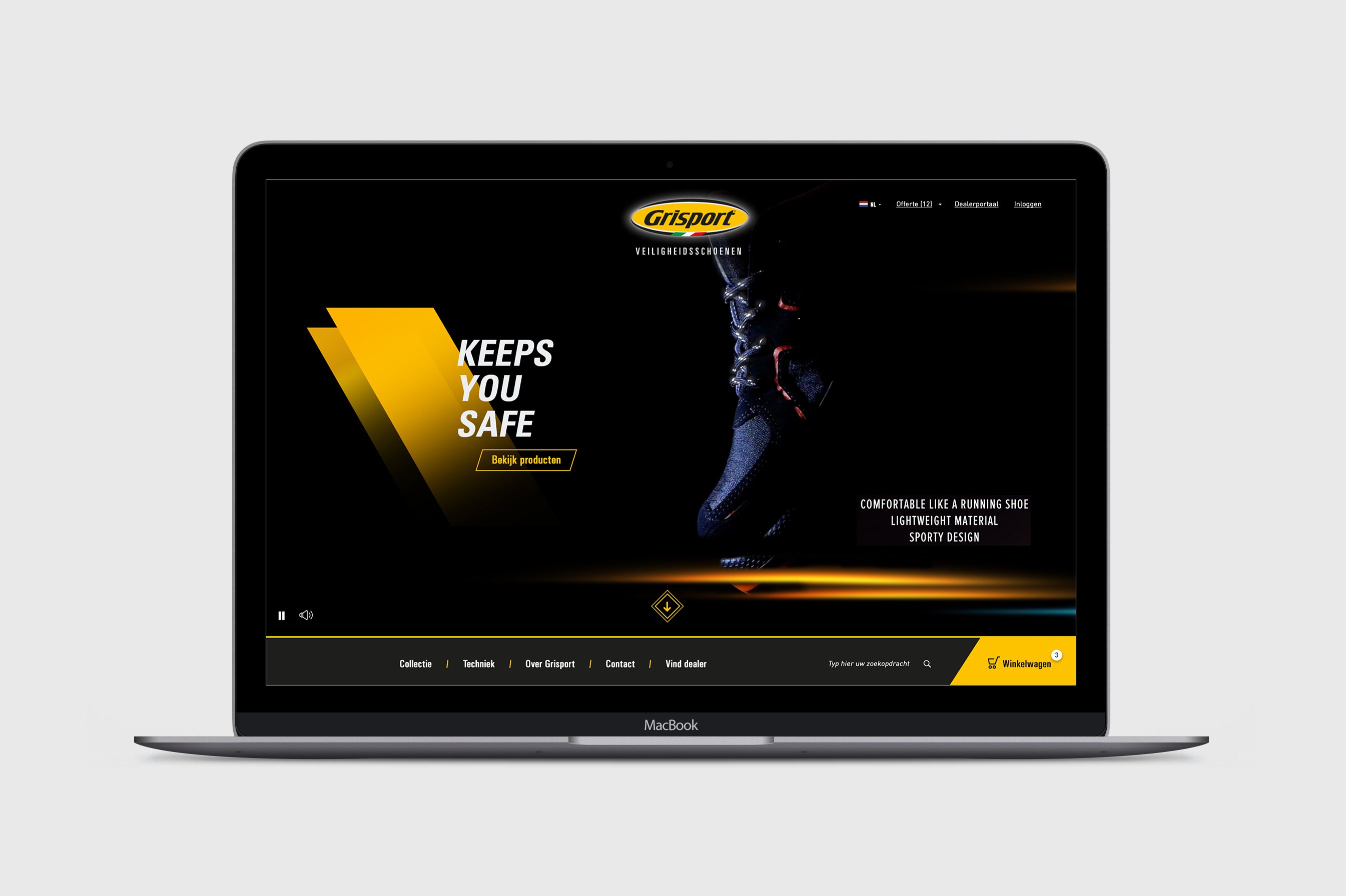 Tijdens mijn stage bij Jelba heb ik meegeholpen met het vormgeven van een nieuwe webshop voor AllShoes. AllShoes is gespecialiseerd in modieuze veiligheidsschoenen. Zij bedenken en ontwerpen hun eigen merken, stuk voor stuk vanuit een unieke, innovatieve marktfilosofie. De veiligheidsschoen moet aansluiten bij belangrijke modetrends. Een van de merken waar ik webshoppagina’s voor ontworpen heb is Grisport.